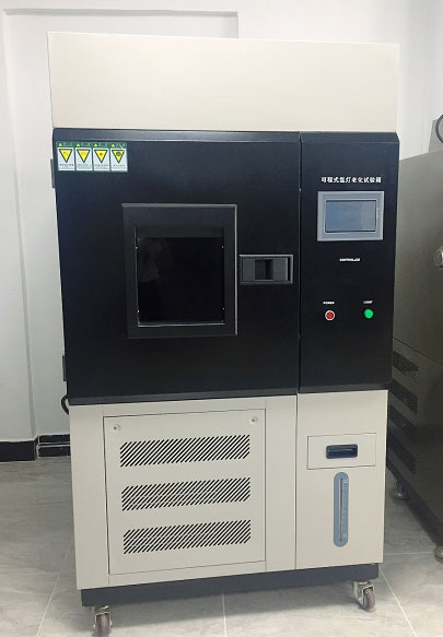箱體正面設(shè)有玻璃觀察窗,窗體上貼有覆膜護目,以免氙燈射線損傷眼睛。